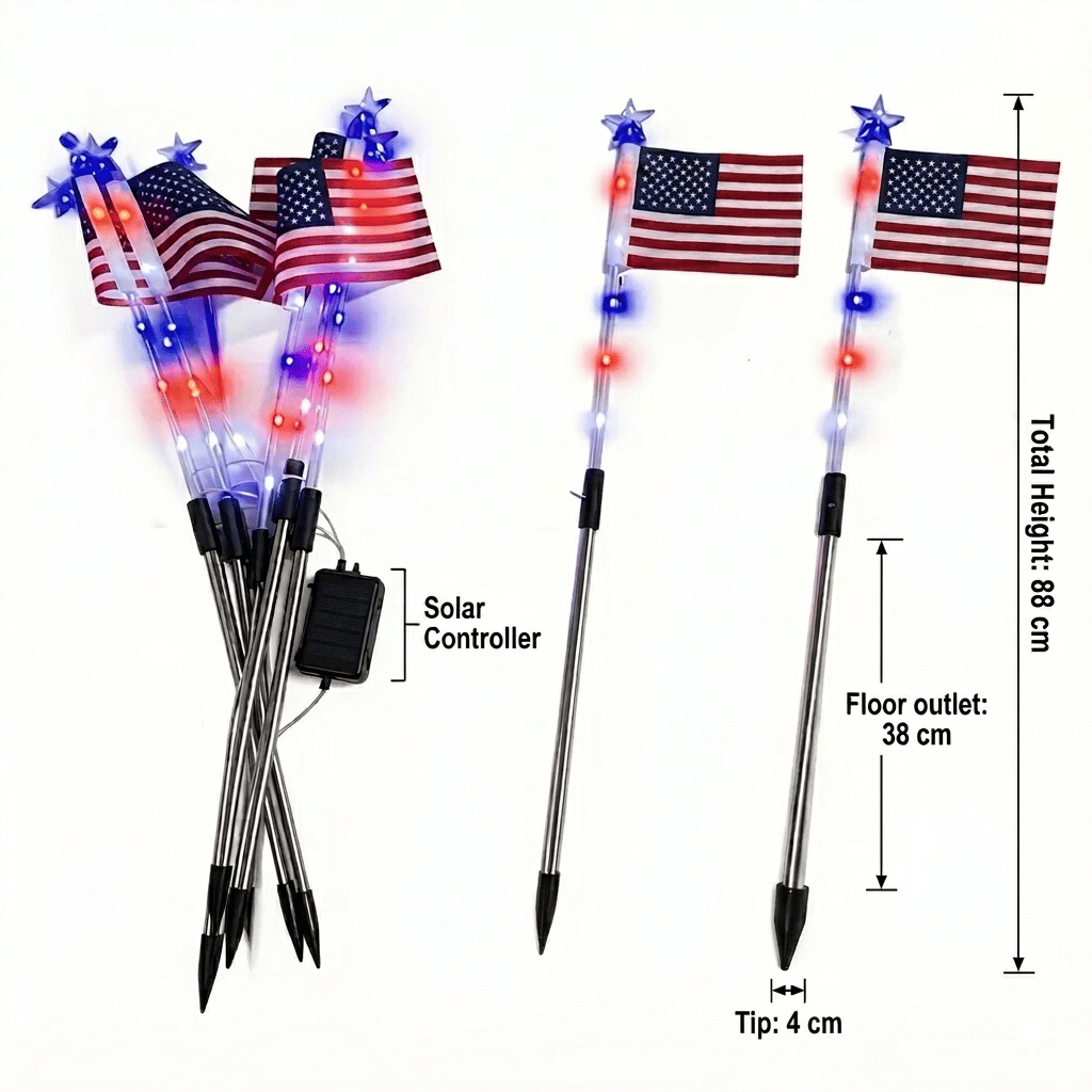 With multiple lighting modes, you can switch between a steady patriotic glow, flashing, and fading effects to match any occasion—from calm evenings to festive celebrations 🎉